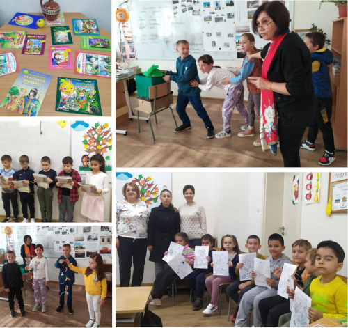 Учениците от II „б“ клас представиха пред малките народните приказки – „Дар от сърце“ и „Златната ябълка“. Госпожа Гъдова и г-жа Грозева изненадаха децата със специално подготвени илюстрации за оцветяване. Потопени в необятния свят на приказките, децата изживяха вълшебни и незабравими мигове.