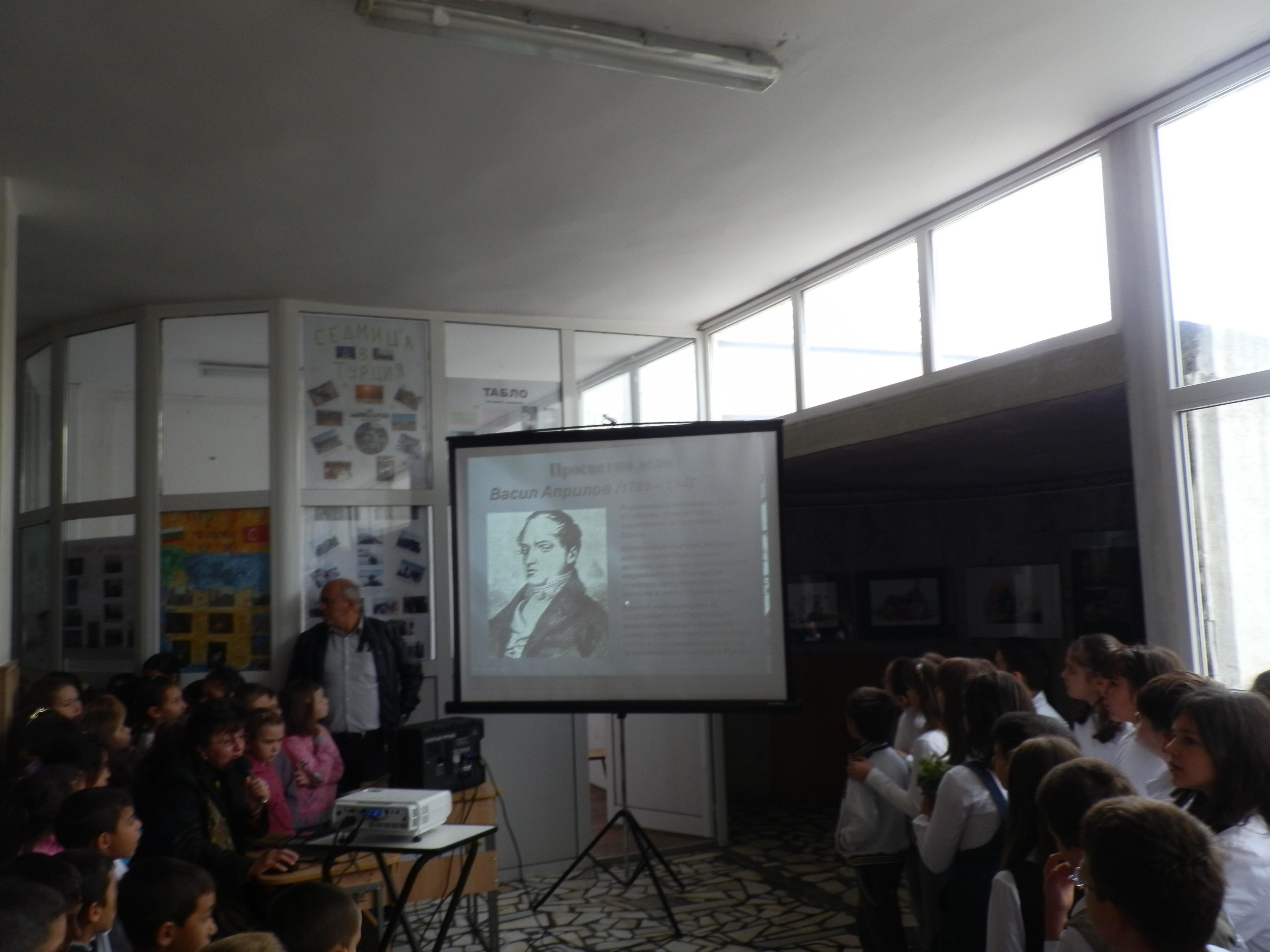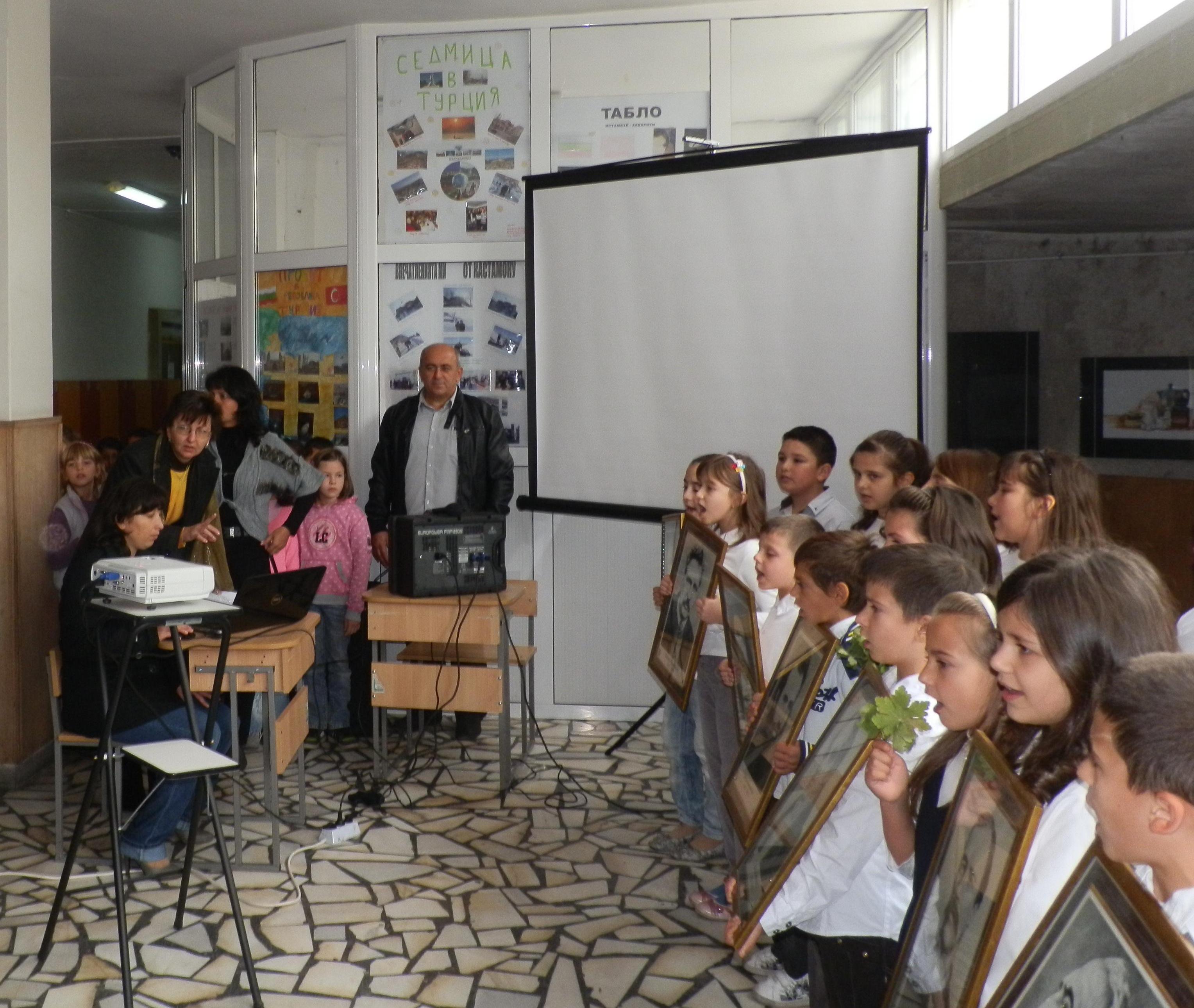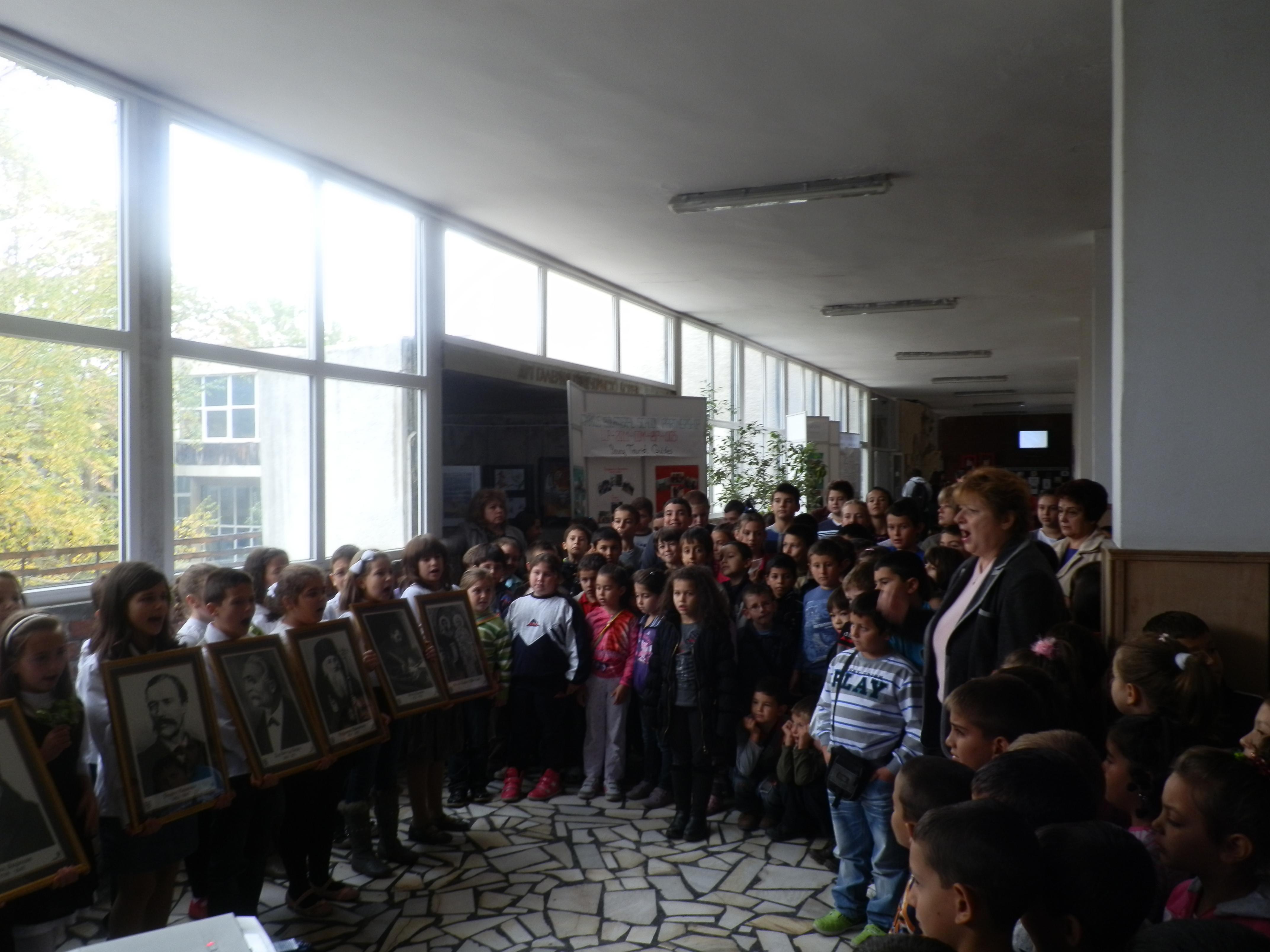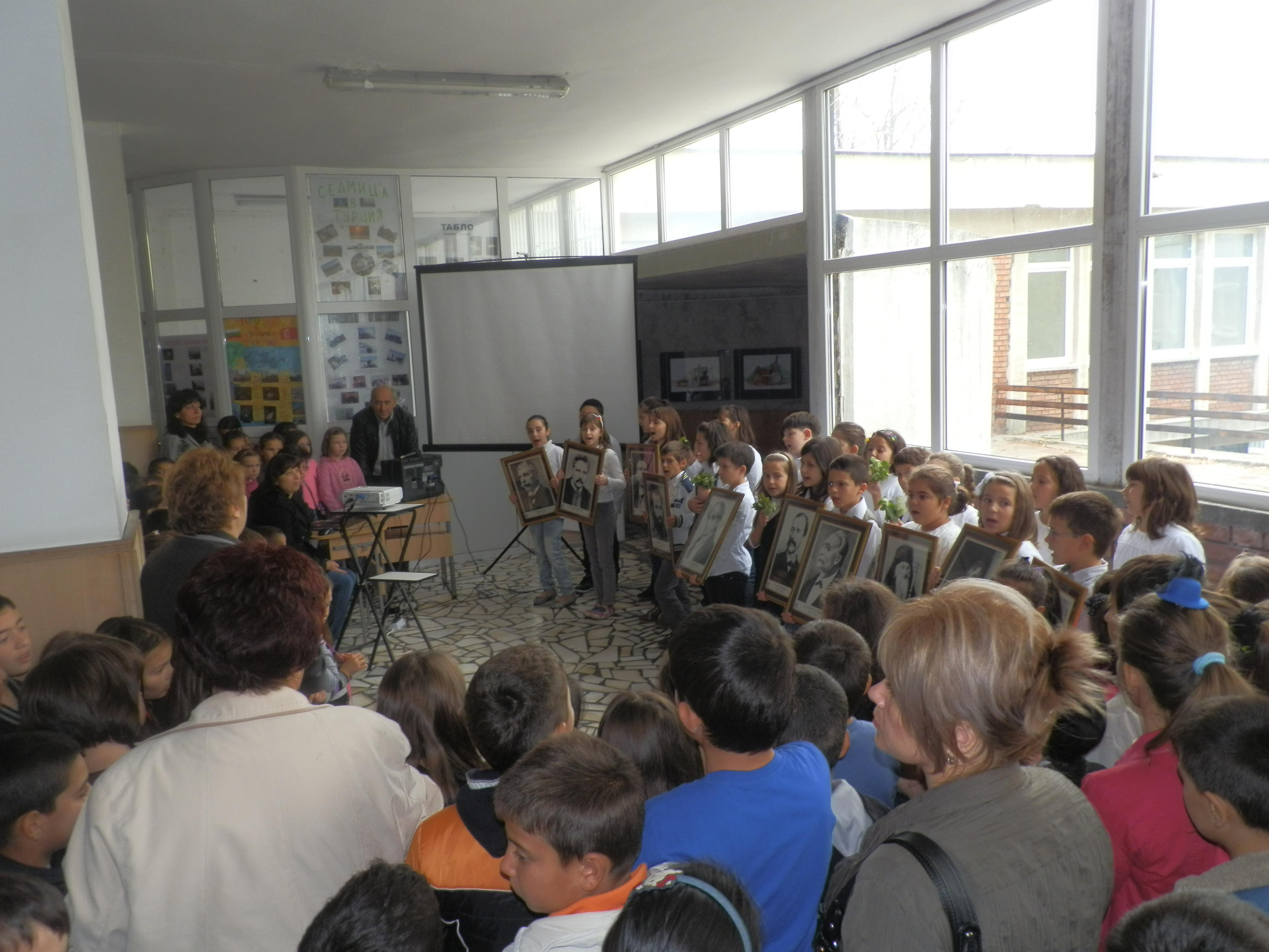 Под тържествените звуци на Химна на Р България започна празничната програма, подготвена от ученици отшести и седми клас. С помощта на г-жа Любка Калайджиева, учител по история, те представиха литературно-музикална композиция, посветена на националния ден на България. Последователно, пред затаилата дъх публика, на голям екран оживяваха паметни места от Родината, напомнящи за славните героични дела и саможертвата. Бе проследена историческата съдба на България – от създаването и , през зората на Възраждането, с повика на Паисий, чиято “ История” звучи като химн на надеждата, за да стигне своя апогей в Априлската епопея. И далеч преди апостолите да започнат своята битка, българите бяха спечелили духовно тази битка. Защото народът притежава 3 свещени неща, които са му давали импулс да живее: