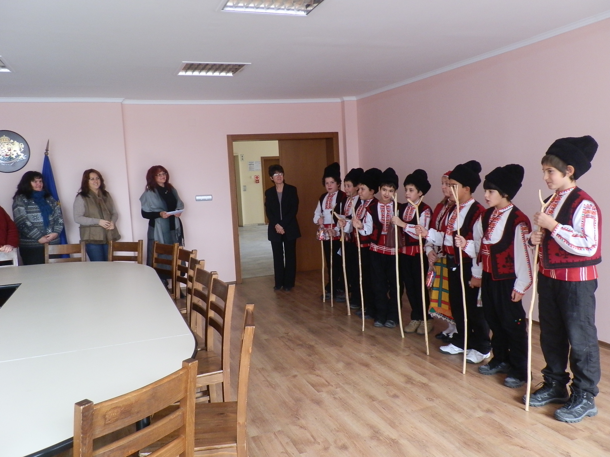 Коледарчета от най-голямото основно училище в региона &ndash ОУ „Св. Св. Кирил и Методий“ в традиционни народни носии и геги, гостуваха на областния управител Иванка Таушанова и поздравиха целия екип на областната администрация по случай светлия християнски празник Рождество Христово с пожелание за здраве, берекет, изобилие и благодат през новата 2013 година. Децата възпроизведоха коледарските наричания и пожелаха на всички да са здрави и благословени, ведри и усмихнати. Наред с празничната почерпка, както повелява фолклорната обредност, децата получиха пъстра ръчно тъкана торба с лакомства и обещаха да дойдат отново след Нова година, за да сурвакат.