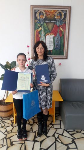 Първо място за Райя Николова от V „А“ клас на ОУ „Св. Св. Кирил и Методий“ гр. Кърджали на Международния конкурс за детска рисунка „С очите си видях бедата 2023“, с ръководител Веска Митева.