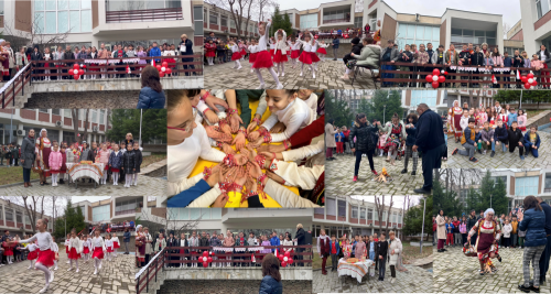 Специално за празника във фоайето на училището учениците от начален етап и прогимназиален етап изработиха от традиционните червено-бели символи мартенички и  украсиха дърво с тях, като пожелаваха на своите съученици, учители и родители дълъг живот, здраве, радост и късмет.