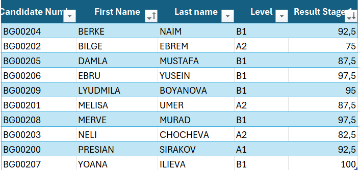 Съгласно регламента на състезанието за националния кръг са класирани – Пресиян Сираков – Vа клас за ниво А1, Мелиса Юмер – VIIб клас за ниво А2 и Йоана Илиева – VIIа клас за ниво B1. Ръководството на училището поздравява всички ученици и пожелава успех на класиралите се за националния кръг.