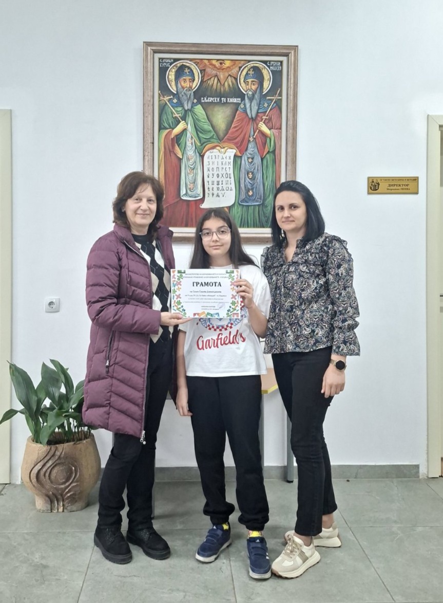 Много добро представяне на Селин Дерменджиева, ученичка от 4. „а“ клас на областния кръг на олимпиадата по математика! Тя демонстрира завидни знания, логическо мислене и упоритост, като се нареди сред най-добрите участници в областта в олимпиадата по математика – четвърто място. Със своето старание и любов към ученето тя успя да постигне резултат, който е повод за гордост не само за училището, но и за цялата ни общност. Подготовката за олимпиадата изискваше много труд, постоянство и подкрепа, за което благодарим както на нейните преподаватели, така и на семейството ѝ. Техният принос е безценен за този успех. Това постижение е доказателство, че когато има желание, дисциплина и вдъхновение, резултатите не закъсняват. Убедени сме, че това е само началото на още много бъдещи успехи!